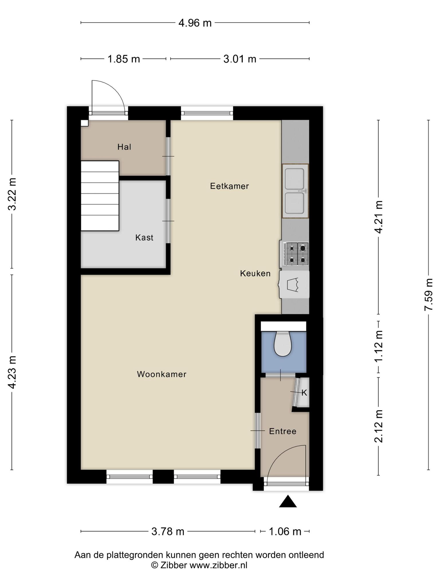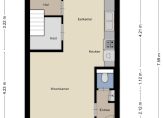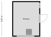 Bij de eettafel zie je twee deuren, waarvan een toegang geeft tot een ruime bergkast/provisieruimte. De andere deur leidt naar een portaal, met een deur naar de tuin en de trap naar de eerste verdieping.