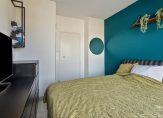 Aan de achterzijde zijn twee slaapkamers, de hoofdslaapkamer met airco en een slaapkamer met toegang tot het tweede balkon. In beide slaapkamers ligt, net als in bijna het hele appartement, laminaat op de vloer en het geheel maakt een goede indruk.