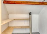 Via de trap in de woonkamer kom je uit op de overloop. Op de overloop is een schuifdeur aanwezig om zo de trap af te kunnen sluiten. Aan de achterzijde zijn er 2 slaapkamers en aan de voorzijde is er een slaapkamer over de volle breedte van de woning. In deze ruime slaapkamer is er ook nog toegang tot een ruimte die boven de berging uitkomt. Deze ruimte is zeer geschikt voor extra opslagruimte of als inloopkast!