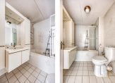 De inpandige badkamer is ruim en voorzien van een wastafelmeubel met veel kastruimte, designradiator, ligbad met douchescherm en toilet. Hier bevindt zich ook een aansluitpunt voor de wasapparatuur.