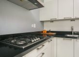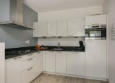 Aansluitend de moderne open keuken welke is afgewerkt met een fraai aanrechtblad en beschikt over de volgende inbouwapparatuur: