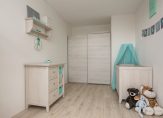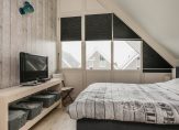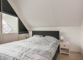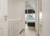 De overloop geeft toegang tot de twee slaapkamers en de badkamer. De slaapkamer aan de voorzijde komt zeer ruimtelijk over door de nokhoogte van ruim 4 meter. Ook hier heeft u een grote raampartij aan de voorzijde met een extra speels effect door de schuinlopende kap.