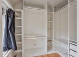 Verrassend is de indeling op de eerste verdieping, met twee ruime slaapkamers en een fantastische kastenkamer. Deze ruimte kan ook, zoals vroeger, worden getransformeerd tot derde slaapkamer. Maar zeg nu zelf, in de op maat gemaakte kasten wil je toch je kleding ophangen en neerleggen?