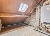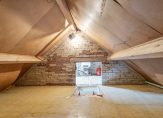 Achter het plafondluik op de overloop is een trap die leidt naar de bergzolder, die uit twee ruimtes bestaat. In het rechterdeel is de opstelling van de HR-ketel.