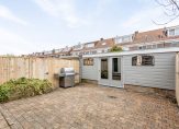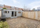Openslaande deuren verbinden de woonkamer met de achtertuin op het heerlijke westen. Aan twee kanten zie je stoere houten schuttingen en de berging is fors vergroot. Zo is er genoeg plek voor de fietsen, je werkbank en gereedschap. Zowel aan de kant van de tuin als de steeg zorgen dubbele deuren voor een goede toegankelijkheid.
