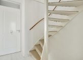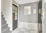 Via de voormalige oprit loop is de entree van deze ruime woning te bereiken. Hier zie je niet alleen de voordeur naar de hal, maar ook een deur naar de (fietsen)berging. De hal heeft een prima formaat en geeft toegang tot met de meterkast, trapopgang en de toiletruimte.