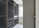 Op de eerste verdieping zijn drie ruime slaapkamers, waarvan twee aan de achterzijde. Een van deze kamers is de master bedroom, met genoeg plek voor een groot tweepersoonsbed en een garderobekast. Deze invulling is ook mogelijk in de slaapkamer aan de voorzijde. En de derde kamer? Daar staat nu een volledig interieur voor kleding, schoenen en accessoires! Een riante kledingruimte, maar kan natuurlijk ook prima dienen als een volwaardige slaapkamer.