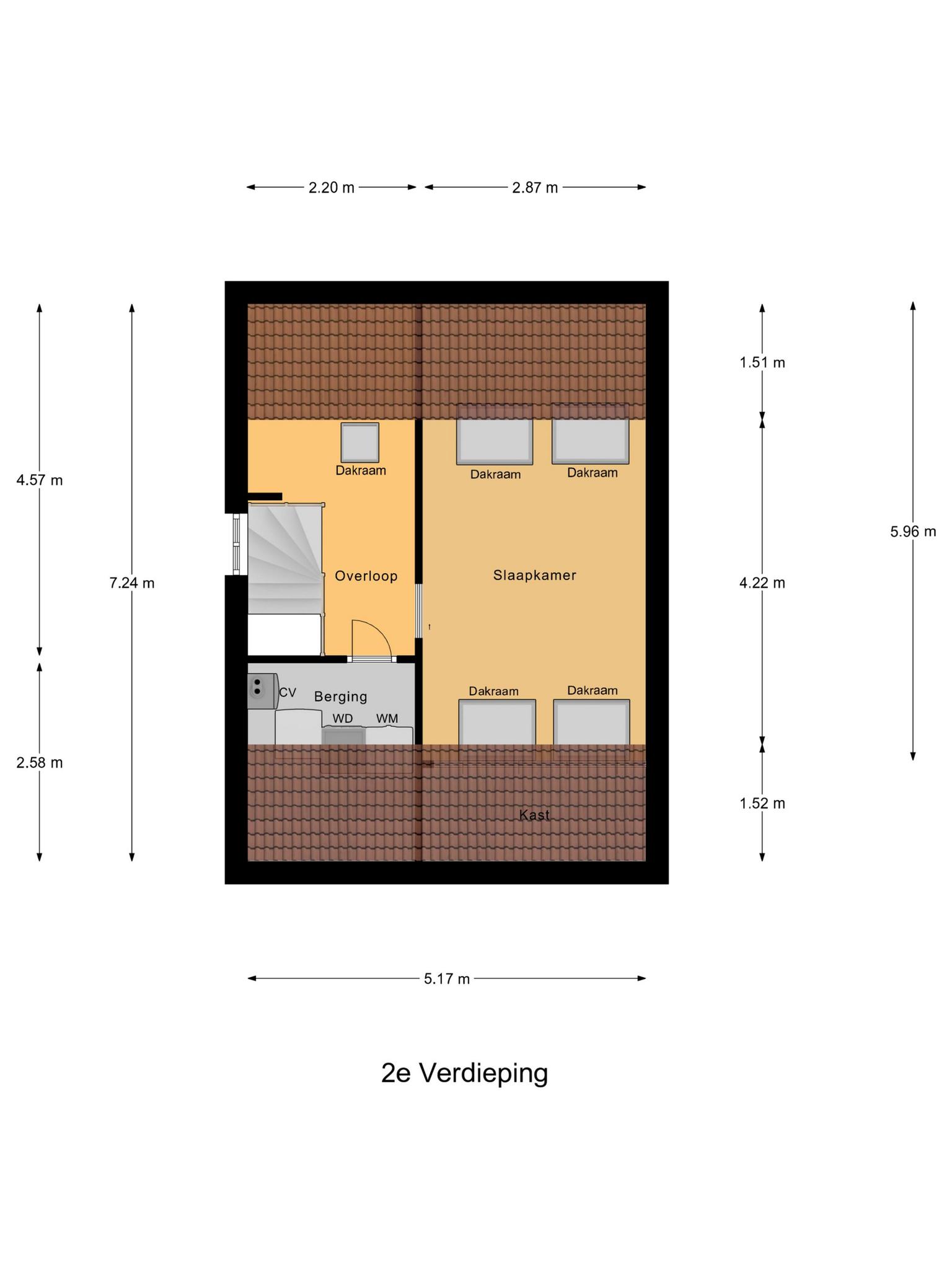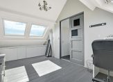 De grootste ruimte op deze verdieping is een zeer ruime slaapkamer, met maar liefst vier dakramen en een hoge nok. Niet alleen als slaapkamer, maar ook als hobbyruimte of werkkamer is dit een fantastische plek! Zijn de aantal slaapkamers van vier in deze woning niet voldoende, dan is met het plaatsen van een tussenwand deze ruimte eenvoudige gesplitst en heb je een extra vijfde slaap-/werkkamer
