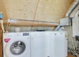 Ruimte is er ook op de tweede verdieping, waar je als eerste de overloop ziet. Met een zijraam, en toegang tot een berging met de HR-ketel en de aansluitingen voor de wasapparatuur.