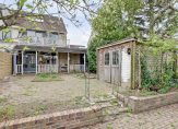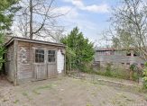In de voortuin wordt de sfeer bepaald door twee bomen, sierbestrating en een fraai hekwerk. Wil je op eigen terrein parkeren, dan is dit eenvoudig te realiseren door het hek te verwijderen. Dubbele openslaande deuren in de woon-/eetkamer geven toegang tot de brede tuin, die grenst aan het water. Er is flink gesnoeid, waardoor je goed kunt zien hoe groot de tuin is. De veranda is een fijne plek om buiten te zitten, net als het grote terras.