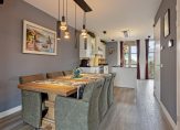 Het op Amerikaanse keukens geïnspireerde hart van het huishouden is van alle denkbare gemakken voorzien. Uiteraard met grote werkbladen, veel kastruimte, een imposant eiland, een lekker groot fornuis met een schouw voor de knusheid. En net als in de VS vinden we hier de hele wereld. Zeer fraai graniet uit Italië, massief hout uit Scandinavië, Duits vernuft en Mexicaans handwerk zijn verzameld en geplaatst met oer-Hollandse precisie.