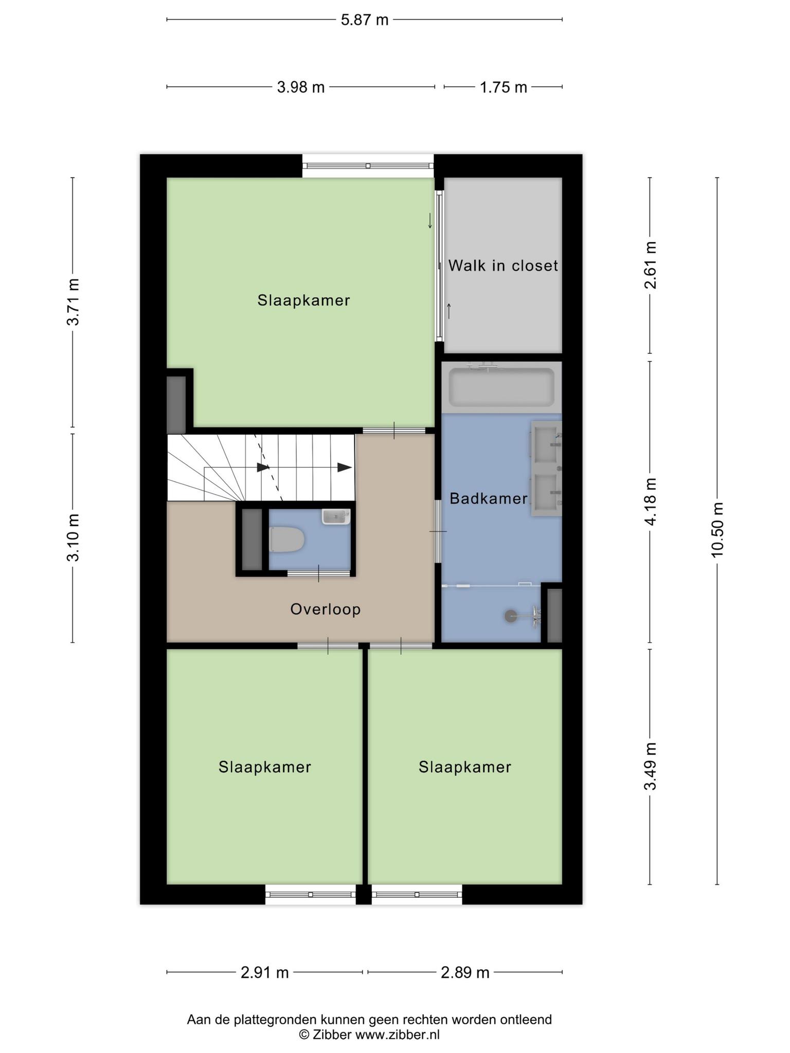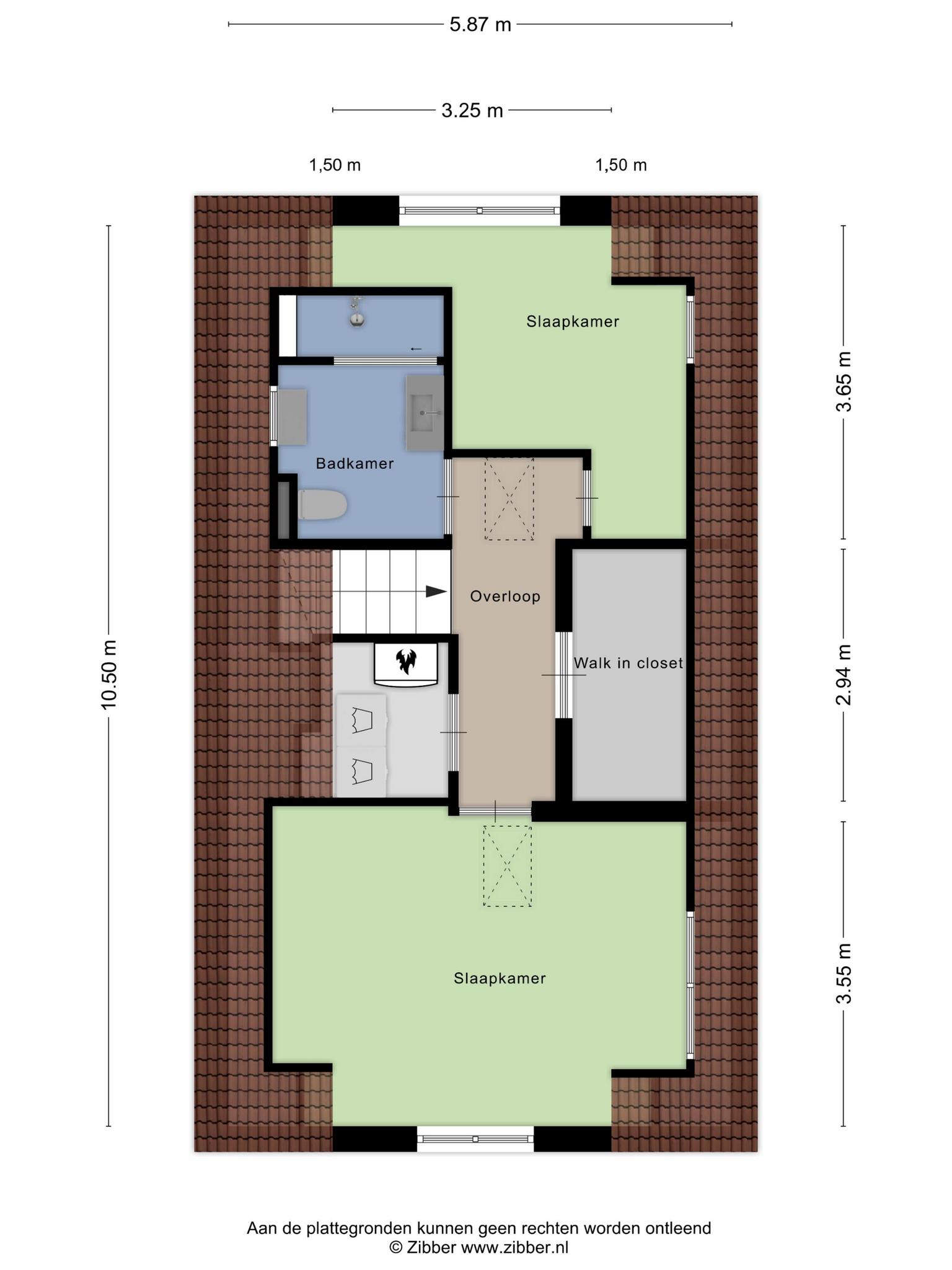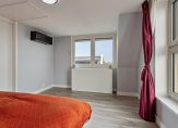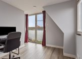Tweede verdieping, volledig gestuct, voorzien van vloerverwarming en airco: overloop met dubbele vlizotrap naar bergvlieringen. Walk-in-closet achter spiegel-schuifdeuren. Berging met aansluitingen wasmachine en -droger, WTW-installatie, units mechanische ventilatie en airconditioning (voorzien van anti-allergene plasmafilters). Vierde slaapkamer (voorzijde), aan weerszijden uitgebreid met dakkapellen en voorzien van verzonken tv-scherm. Vijfde slaapkamer met eveneens dakkapel plus gevelhoge raampartij met uitzicht op de tuin, steiger en Zaan.