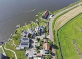 Onderheide houten schuur met dubbele openslaande deuren en overkapping. Voorzien van extra wandcontactdozen en eigen meterkast. Buitenkast met aansturing irrigatiesysteem voor zowel de voortuin als de borders en gazon in de diepe achtertuin. Miniterp met stevig verankerde replica van oudhollandse poldermolen De Zwaan (met draaiende wieken en verlichting). Bestraat pad naar met hek afgescheiden (gezinnen met jonge kinderen!) houten aanlegsteiger aan de Zaan. Deze is voorzien van elektra, aansluiting op Zaan- en leidingwater, buitendouche en zwemtrap.
