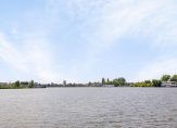 De grootste asset van deze villa blijft echter toch de ligging aan de Zaan. De volle breedte van het perceel grenst aan het water. De houten steiger is extra uitgerust met wandcontactdozen, ideaal om bijvoorbeeld een sloep op te laden, en een buitendouche met leidingwater. De zwemtrap is onmisbaar – en vooral onweerstaanbaar – voor gezinnen met kinderen. Want hoe leuk is dat, zo’n groot zwembad voor je neus? Op dit punt is de Zaan breed en ligt de vaargeul veilig aan de overkant.