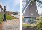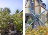 Net als aan de keukenzijde zorgen openslaande deuren voor contact met de buitenruimte. Aan de Zaanzijde betreft dit een wintertuin, oftewel een serre. Zeer solide aluminium, met schuifpuien helemaal te openen om één te worden met de tuin. Ook hier zijn geen halve maatregelen genomen. De keurig onderhouden gazons, borders en terrassen worden via slimme irrigatie naar behoefte nat of droog gehouden. De bekroning wordt gevormd door de perfecte replica van De Zwaan, een historische poldermolen in Amstelland.