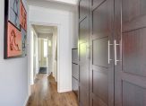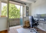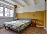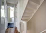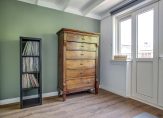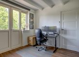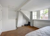 De overloop met paneeldeuren en stucwerk is, net als de rest van het huis, een plaatje en heeft een prachtig balkenplafond. In totaal zijn er drie slaapkamers, waarvan twee aan de achterzijde. Een van deze kamers is de master bedroom, met een grote kastenwand voorzien van schuifdeuren. De derde slaapkamer is aan de voorzijde, met openslaande deuren naar het balkon boven de erker.