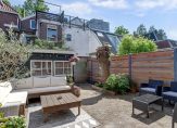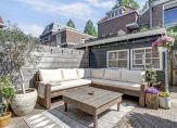 De voortuin, met een klassiek hekwerk, is geheel bestraat en de achtertuin is een heerlijke plek om in alle rust in de zon te zitten. Omdat de tuin beschut en op het zuiden is, kunt u al vroeg in het jaar heerlijk buiten genieten. De originele markies zorgt ervoor dat het binnen behaaglijk blijft op warme dagen. In de border staat een recent gesnoeide wilg en achter de berging is een overkapping gebouwd, voor de fietsen en andere (tuin)spullen. Er is een achterom, dus je hoeft niet met de fiets door het huis! De dakgoten zijn eind 2024 vernieuwd en voorzien van zinken hemelwaterafvoer, en daarnaast strak in de lak gezet. In de tuin kun je heerlijk tot rust komen en je lekker thuis voelen.