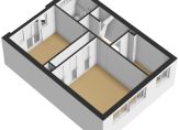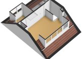 Een dakkapel aan de voorzijde en een brede dakkapel aan de achterzijde zorgen voor veel extra ruimte en lichtinval op de tweede verdieping. De ruimte aan de achterzijde, met de trap naar de eerste verdieping, is ingericht als slaapkamer en is multifunctioneel. Aan de voorzijde zijn een berging/cv-ruimte en een slaapkamer, ingericht als werkkamer. Er zijn luiken in de muur en in de nok, waardoor deze verdieping extra opslagruimte biedt.