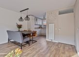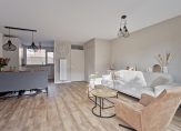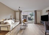 Licht, ruimte en sfeer kenmerken de tuingerichte woonkamer, met een schuifpui op het zonnige zuiden. Met een breedte van 5.13 meter biedt de woonkamer plek aan een grote zithoek en een lange eettafel, waardoor het geen probleem is om vrienden en familie uit te nodigen voor een etentje. Erg handig is de bergkast, onder de trap. Dat scheelt een kast in de woonkamer!
