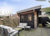 De voortuin, waar de bewoners een tafeltje met stoelen hebben gezet, is geheel bestraat. Vanuit de woonkamer loop je de achtertuin in, gesitueerd op het zonnige zuiden. De mooie erfafscheiding, beplanting en de stijlvolle berging bepalen de sfeer in deze mooi aangelegde tuin. Naast de berging is een poort naar een brede, autovrije straat. Hier woon je heerlijk rustig!