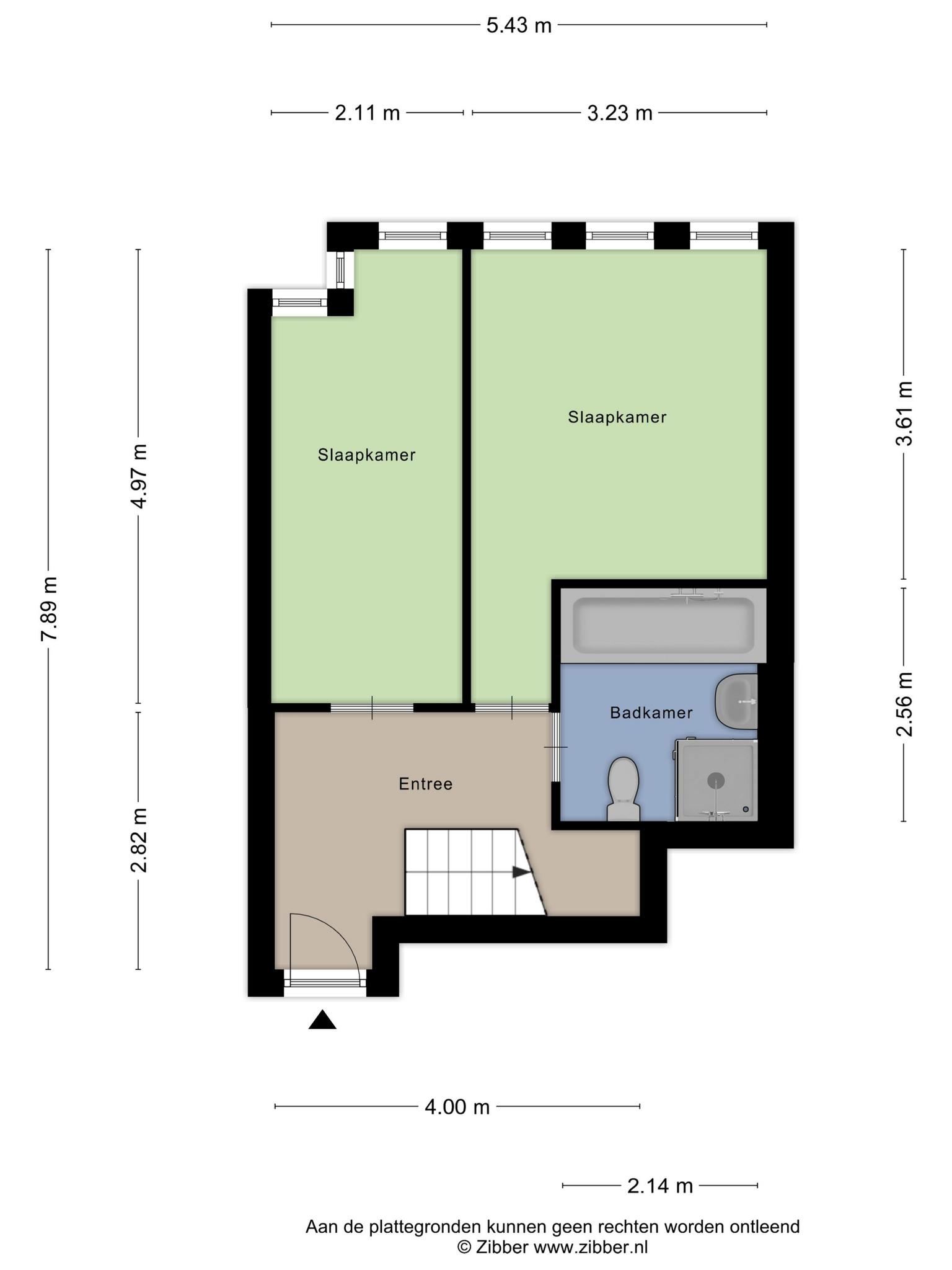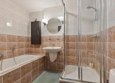 Derde verdieping (entree): Hal met trap naar boven, 2 slaapkamers en een ruime badkamer met ligbad, douche, toilet en wastafel.