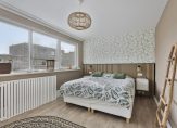 Niet alleen de overloop, maar ook de slaapkamers zijn heel ruim. In totaal zijn er drie slaapkamers op deze verdieping; twee aan de voorzijde en aan de achterzijde is de master bedroom over de hele breedte van het huis. Op de vloer ligt laminaat en op een deel van de muren is afgewerkt met behang.