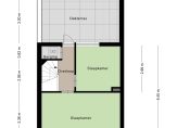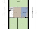 Aan de voorzijde is de keuken, die in 2023 is vernieuwd. De stijlvolle zwarte U-opstelling biedt veel bergruimte en het merendeel van de apparatuur is ingebouwd: een inductie kookplaat, afzuigkap, vaatwasser en een combi-oven. Fraaie elementen zijn het houtlook blad, de groene wandtegels en de brede spoelbak met mooie kraan.