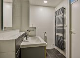 Op de overloop, aan beide kanten van de trap, is een vaste kast gemaakt. Verder zijn er vier slaapkamers op deze verdieping, waarvan een in gebruik is als kleedruimte. Deze kamer, met een dakraam en een raam in de achtergevel, is momenteel vanuit de ruime master bedroom te bereiken. Met wat lichte ingrepen kan zelfs een 5e slaapkamer hier worden gerealiseerd, ter illustratie hebben wij een extra plattegrond bijgevoegd. Aan de voorzijde zijn twee slaapkamers, in gebruik als kinderkamer en werk-/logeerkamer. In 2018 is de badkamer geheel vernieuwd, uitgevoerd in een moderne stijl. De ruimte is ingedeeld met een inloopdouche, wastafelmeubel, grote spiegel en een tweede toilet. Naast de deur hangt een stijlvolle designradiator en de hoge kast aan de andere zijde biedt, net als de lades van het wastafelmeubel, veel praktische bergruimte.
