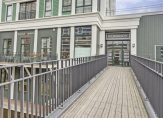 On the corner of the building, to the right of Bagels & Beans, is the entrance to the beautiful Romanov building. On the outside are the mailboxes and the doorbell panel with video intercom.