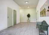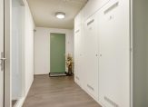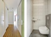 Ben je op de derde verdieping, via de lift of trap, dan loop je naar de voordeur van nummer 9. Achter deze deur is de hal, in een mooie T-vorm. De pvc-vloer, met een mooi houtpatroon en vloerverwarming, ligt in bijna het hele appartement. Aan de linkerzijde is de toiletruimte met fonteintje en aan de rechterzijde de nette badkamer, ingedeeld met een inloopdouche en een wastafel.