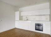 De woonkamer met open keuken heeft drie grote ramen aan de zuidkant, waardoor veel licht naar binnen valt. Neem even de tijd om van het prachtige uitzicht te genieten, richting het vernieuwde Stadshart met het meest bekende hotel van Nederland en het water. In de keuken staat een moderne wandopstelling met een ingebouwde inductie kookplaat, afzuigkap, combi-oven, vaatwasser en een koel-/vriescombinatie. Naast de keuken is een handige berging/bijkeuken, met de verwarmingsinstallatie en de wasmachineaansluiting.