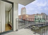 The south-facing balcony is a great place to sit outside, in the sun and with a super nice view. You look out over the water and many modern buildings, mostly in the typical Zaanse style. The balcony is wide and deep enough to invite friends for a bite to eat and a drink, at this special place in Zaandam!
