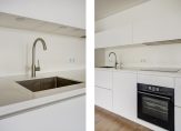 The living room with open kitchen has three large windows on the south side, which allows a lot of light to enter. Take a moment to enjoy the beautiful view, towards the renovated Stadshart with the most famous hotel in the Netherlands and the water. In the kitchen there is a modern wall unit with a built-in induction hob, extractor hood, combi oven, dishwasher and a fridge/freezer. Next to the kitchen is a handy storage room/utility room, with the heating system and the washing machine connection.