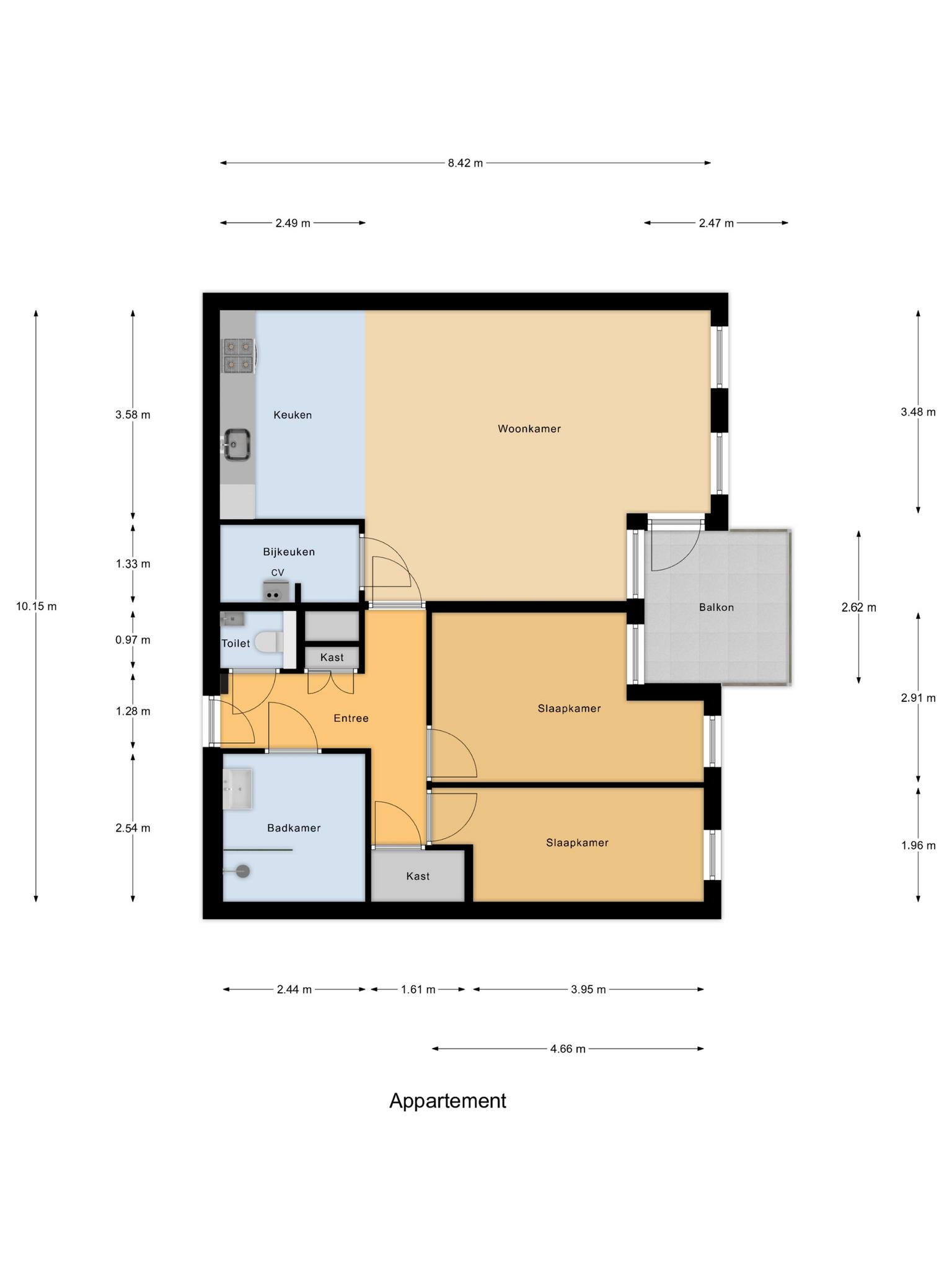 This beautiful apartment has two bedrooms that, like the living room, are situated on the south. The largest bedroom has a width of 2.90 meters, which is enough to place a double bed with enough space left for a wardrobe. Next to the second bedroom is a spacious storage cupboard, accessible from the hall.
