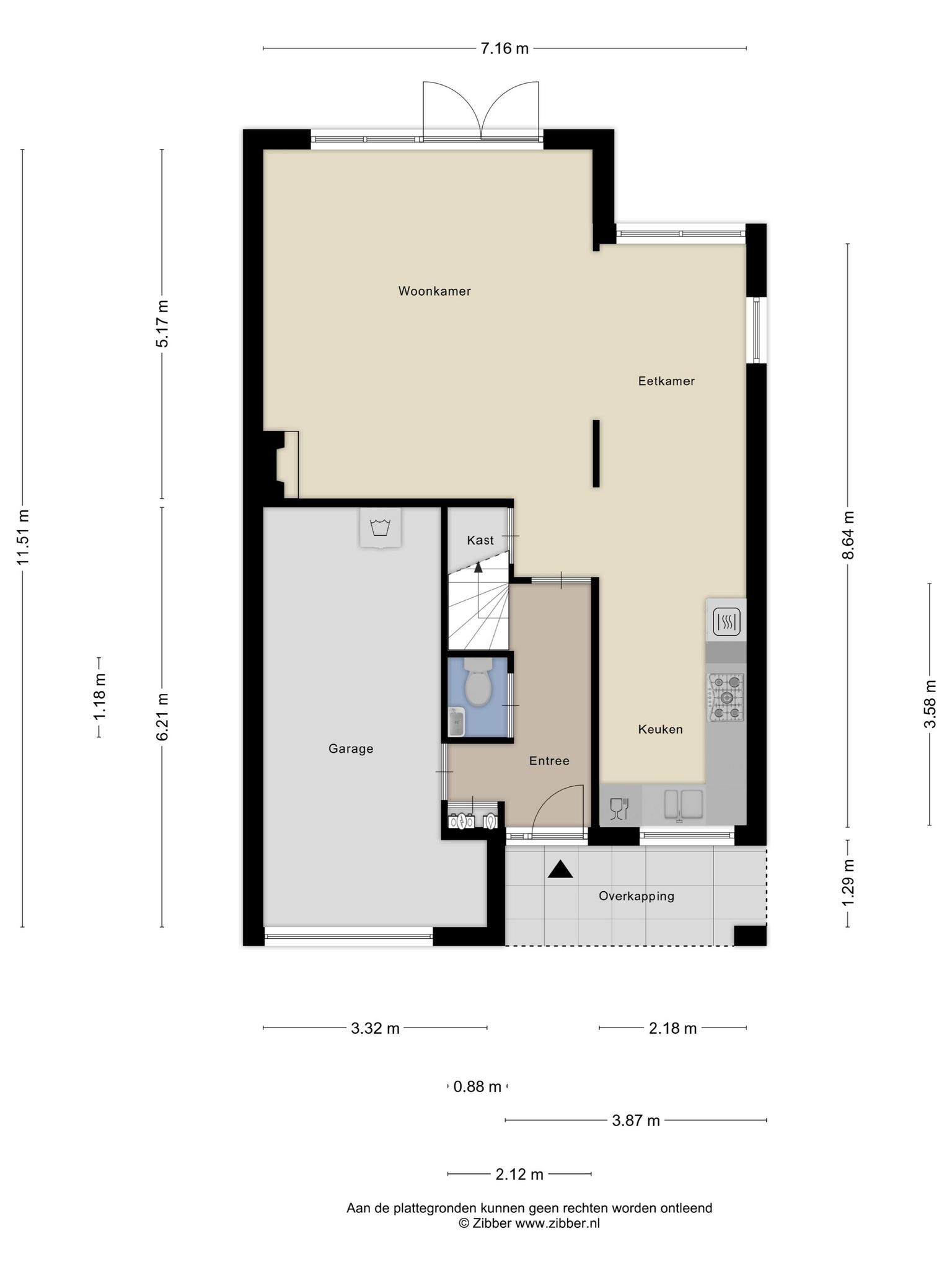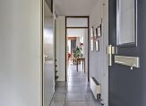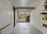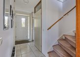 Rechts van de garage is de overdekte entree van deze halfvrijstaande woning. In de hal, aan de linkerzijde, zijn de meterkast, trapopgang en de toiletruimte met fonteintje. De inpandige garage is een van de ruimtes die vanuit de hal te bereiken is. Met een oppervlakte van circa 17.2 m2 is de verwarmde garage geschikt voor een auto, de fiets en andere spullen.