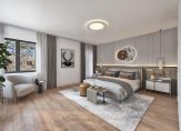 Ruimte is er niet alleen op de begane grond, maar ook op de eerste verdieping. De dubbele overloop met vide en lichtstraat biedt de mogelijkheid om een werk-/studeerplek te creëren en aan de andere zijde, in een inbouwkast, is de opstelling van de HR-ketel. De bruine laminaatvloer ligt op bijna de hele verdieping.
