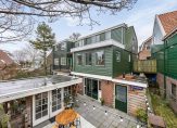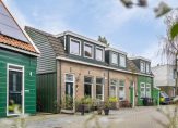 De buitenzijde van deze dijkwoning, met aan de achter- en zijgevel een houtskeletbouw afgewerkt met metalen houtlook beplating, oogt fraai. Het huisnummer boven de voordeur geeft aan waar je moet zijn om de binnenzijde te bewonderen.