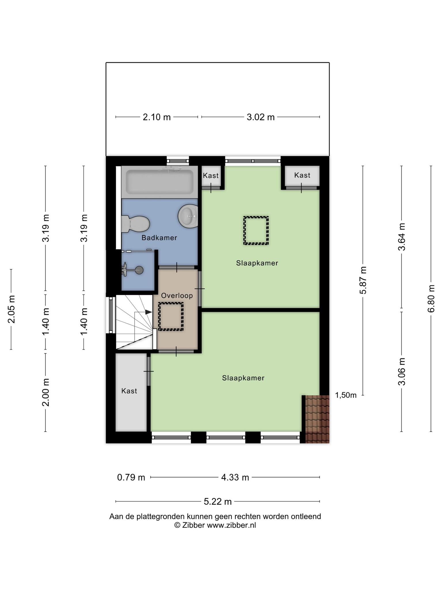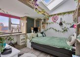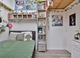 Er zijn twee slaapkamers op deze verdieping, waarmee het totaal op drie komt. De slaapkamer aan de voorzijde, groot genoeg voor een tweepersoonsbed, heeft een breed dakkapel en een inbouwkast. In de slaapkamer aan de achterzijde zijn twee inbouwkasten gemaakt en het schuine dak met groot raam geeft deze kamer een unieke sfeer.