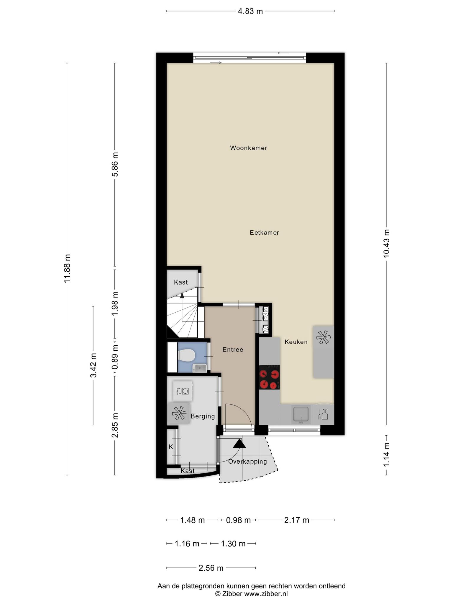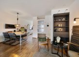Thanks to the extension, the living room, excluding open kitchen, is 7 meters long. A large sliding door has been placed in the rear facade and the ceiling is partly equipped with recessed lighting. There is also room for a second seating area and a large dining table. And of course the indispensable stair cupboard is not missing!