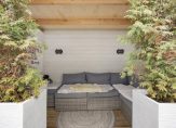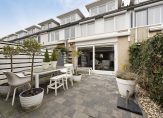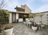 De voortuin is voor een groot deel bestraat, waardoor er plek is om een bankje neer te zetten. Via de schuifpui in de woonkamer loop je de achtertuin in, die op het zuiden gesitueerd is. Er is volop ruimte om in de zon te zitten en het overdekte terras is een fijne, sfeervolle schaduwplek. In de berging is een poort naar de achtergelegen, autovrije straat met een groenstrook.