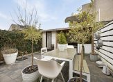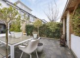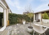 The front garden is largely paved, providing space for a bench. Through the sliding doors in the living room you enter the backyard, which is located on the south. There is plenty of space to sit in the sun and the covered terrace is a nice, attractive shaded spot. In the storage room there is a gate to the rear, car-free street with a green area.
