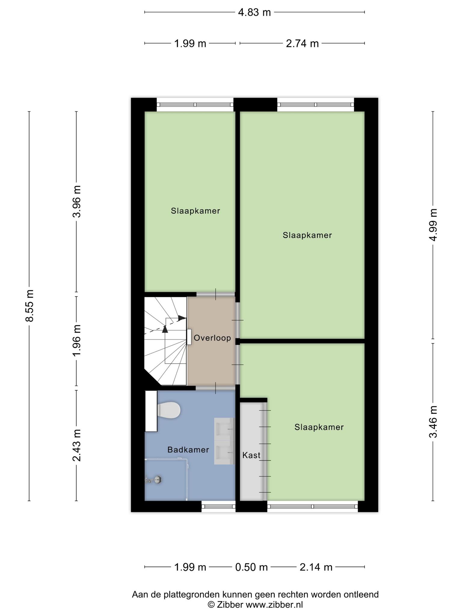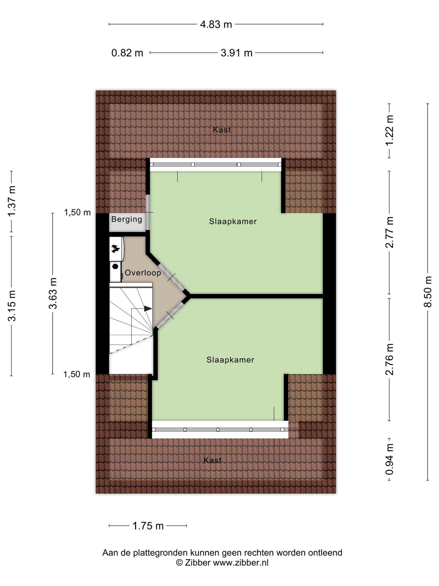Als je de tweede verdieping hebt gezien, dan staat het totale aantal slaapkamers op vijf. De slaapkamers zijn nagenoeg even groot, hebben bergruimte in de schuinte van het dak en een brede dakkapel. Vanuit de kamer aan de voorzijde kijk je, tussen de huizen door, naar natuurgebied Guisveld.