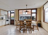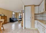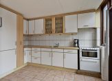 Omdat de muur tussen de keuken en woonkamer grotendeels is verwijderd, is de keuken optisch een stuk groter geworden en is het nu één geheel met de woonkamer. In de keuken staat een lichte hoekopstelling met enige inbouwapparatuur, waarbij de kans groot is dat er door de koper(s) een nieuwe keuken wordt geplaatst. Voor welke indeling ga je? Een L-vorm, U-vorm of toch voor een eiland?