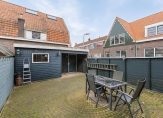 Het groene sierhekwerk past qua stijl goed bij de woning en er is ruimte om een bankje neer te zetten, om van de Zaanse zon te genieten. Vanuit de keuken loop je de achtertuin op het oosten in. De tuin is geheel bestraat, er is volop zon en houten schuttingen vormen een goede erfafscheiding. In de berging is ruimte voor de fietsen en onder de overkapping is een poort naar de steeg.