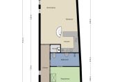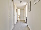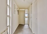 De eerste ruimte in deze bovenwoning is de lange hal, met een raam in de zijgevel voor prettig lichtinval. Aan het einde van de hal, aan de rechterzijde, is een berging met de HR-ketel 2012. In deze ruimte is het mogelijk om een kapstok op te hangen.