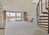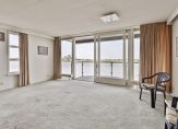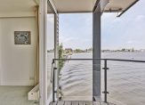 In de woonkamer trekt het uitzicht naar de Zaan, gedecoreerd met molens, direct de aandacht. Het is een levend schilderij met bootjes en grote schepen die hier voorbij trekken. Door de grote ramen, van vloer tot plafond, valt veel licht naar binnen en de schuifpui verbindt de woonkamer met het balkon. In de zijgevel zijn twee smalle, hoge ramen geplaatst en de maatwerk kastenwand biedt veel bergruimte.