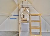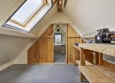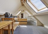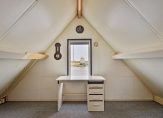 Een verdieping hoger, te bereiken via een vaste trap, is nog meer ruimte die om een nieuwe invulling vraagt. Aan de kant van de Zaan is een slaapkamer en de tweede ruimte, met grote dakramen, is gebruikt als berging en hobbyruimte maar kan ook prima gebruikt worden als 3e slaapkamer.