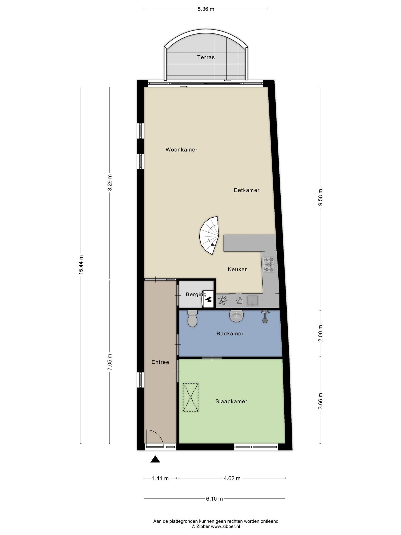 Op de begane grond zijn een gezamenlijke (fietsen)berging en de entree, die toegang geeft tot de hal met de bordestrap naar de eerste verdieping. Het is mogelijk om, zoals nu, een traplift te plaatsen waardoor trappenlopen naar de 1e verdieping niet meer nodig is.