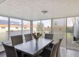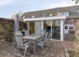 Deze badkamer komt naast de slaap-/werkkamer ook weer uit op de berging. Vanuit de berging is een doorloop naar de tuinkamer/serre. Allereerst is er een grote provisieruimte. De tuinkamer/serre met tegelvloer beschikt over een keukenblok en is rondom voorzien van ramen met uitzicht op de tuin. Dit is een groot deel van het jaar een heerlijke ruimte om te verblijven en van de tuin te genieten.