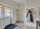Zoals het gebruikelijk is bij boerderijen betreedt u de woning via de achterzijde van de woning. Hier komt u in een berging/bijkeuken met toegang tot een toiletruimte, de badkamer en gang met provisie-/bergruimte en aansluitend een tuinkamer/serre.